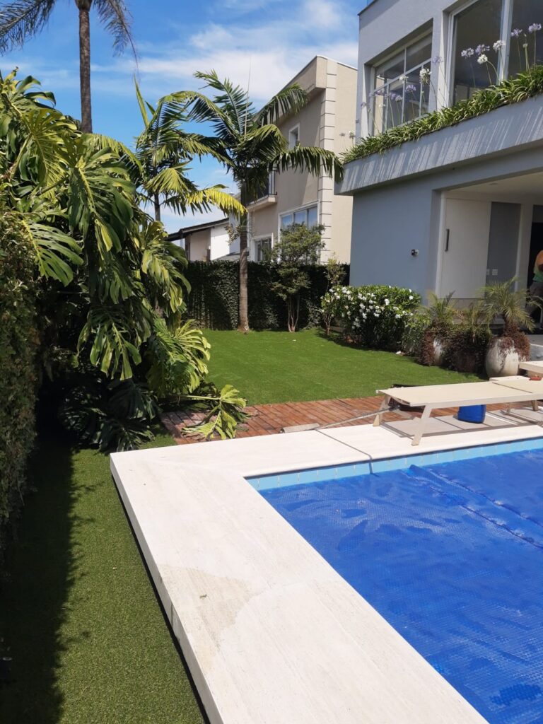 A grama sintética é a solução perfeita para quem busca beleza, conforto e praticidade: use sua piscina sem ter que cortar, regar ou se preocupar com lama e cloro manchando seu chão.