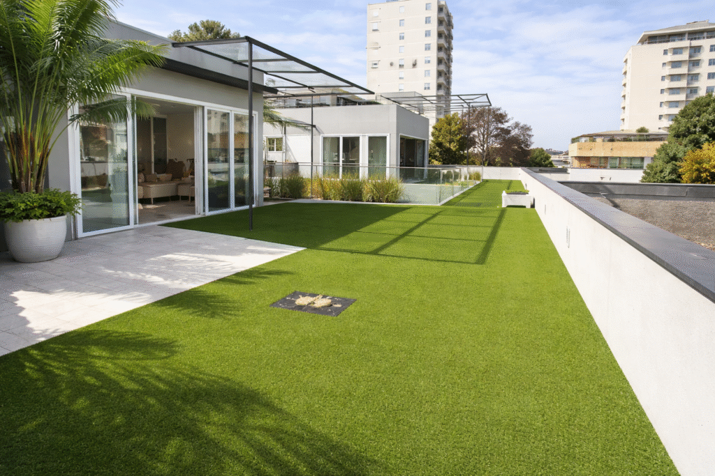 A grama artificial para quintal é ideal para quem quer um espaço bonito, verde e funcional sem se preocupar com: